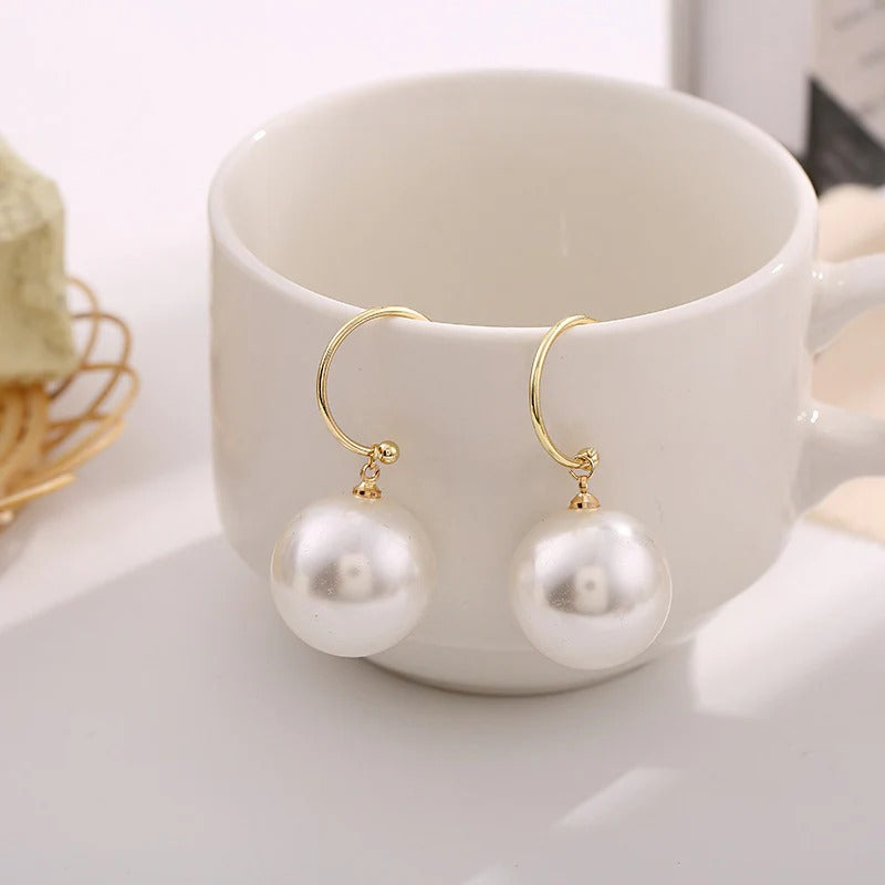 Elegant Party Women's 925 Sterling Silver Needle Pearl Earrings with Large Hoop and Imitation Pearl, All Season Versatile, Thanksgiving Day Holiday Gift, Simple Style Alloy with Plating, for Gift-Giving and Parties