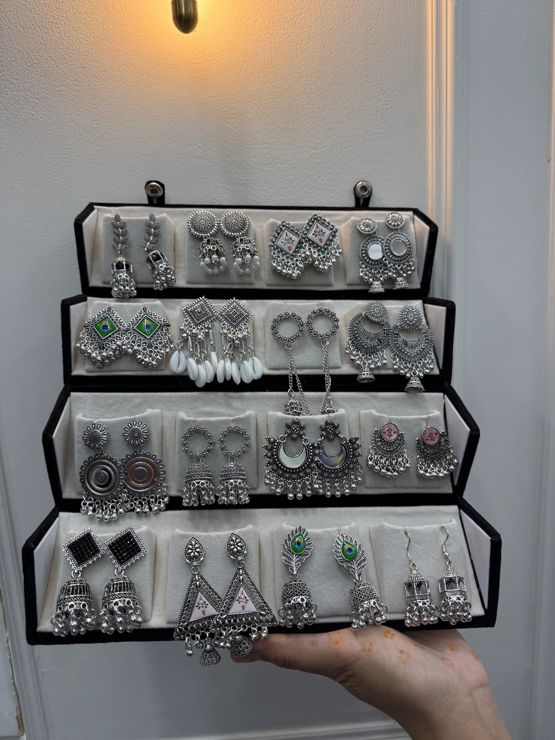 Keep your delicate jhumkas safe, organized, and beautifully stored with our premium Folding Jhumka Box. Its lightweight, foldable design and durable material make it a must-have accessory for every jewelry lover.